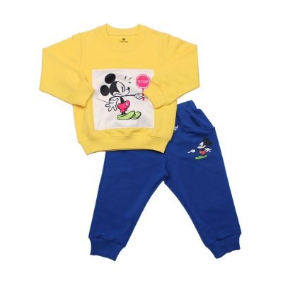 Bộ nỉ da cá bé trai Mamago HT19D in hình Mickey vàng xanh