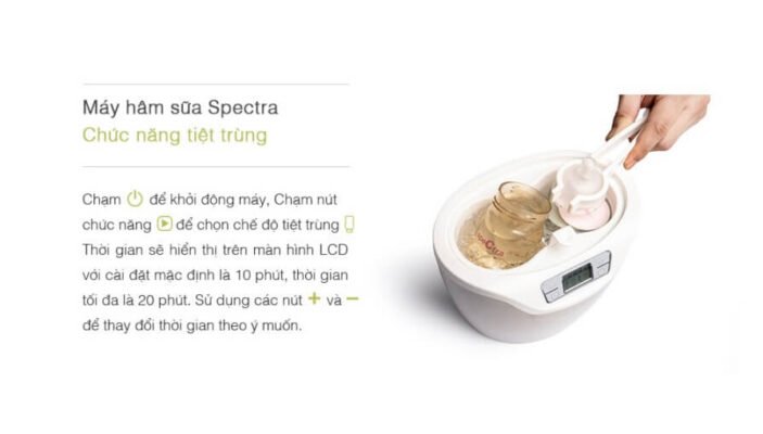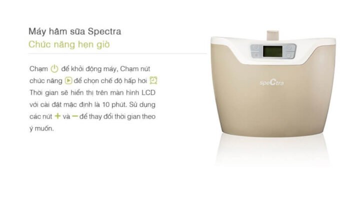 – Máy hâm sữa Spectra có khả năng hẹn giờ trước đối với cả 3 chức năng giúp mẹ tiết kiệm thời gian và công sức canh chừng nhiệt độ.