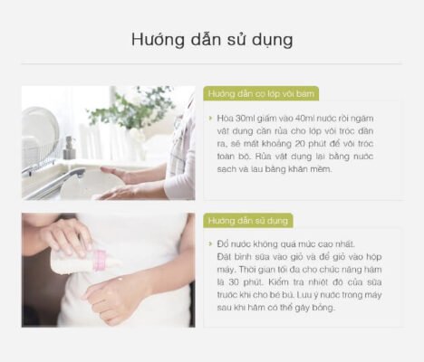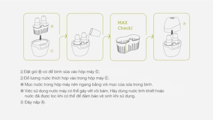 – Khả năng tiệt trùng bình sữa bằng hơi nước an toàn.