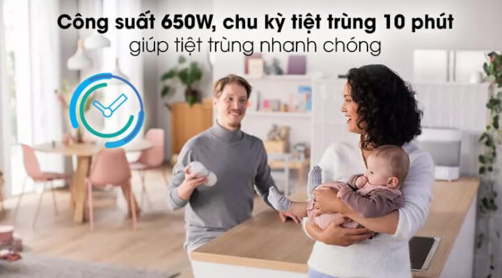 – Thời gian tiệt trùng nhanh chóng, chỉ mất 10 phút là bạn đã có bình sữa sạch sẽ, an toàn cho bé yêu dùng.