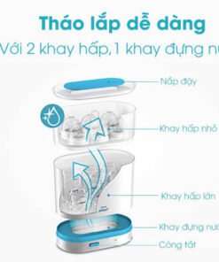– Khay hấp lớn cho phép mẹ tiệt trùng 6 bình sữa cùng lúc.