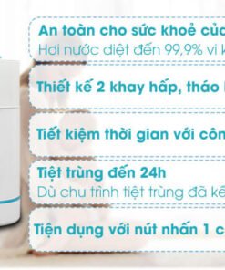 – Công nghệ tiệt trùng bằng hơi nước hiện đại, không sử dụng hóa chất nên tuyệt đối an toàn cho bé yêu.