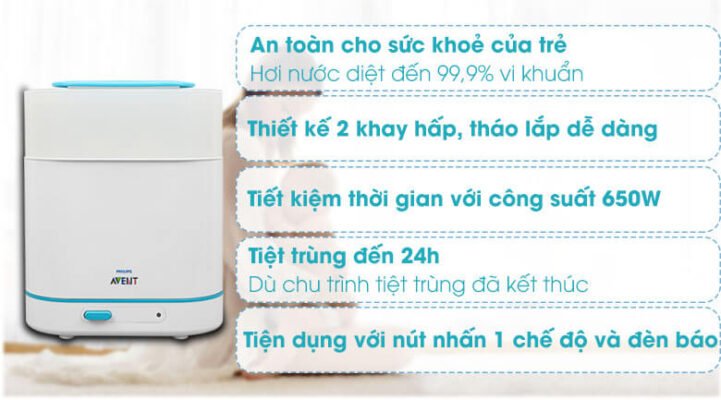 – Đọc kỹ và tuân thủ hướng dẫn sử dụng đi kèm máy tiệt trùng bình sữa cho bé.