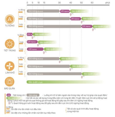 – Máy tiệt trùng sấy khô UV Fatzbaby FB4716TN có 4 chế độ hoạt động đáp ứng các nhu cầu sử dụng khác nhau: