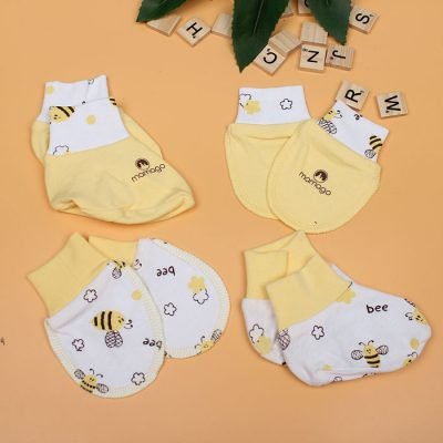 Set bao tay bao chân cho bé sơ sinh Mamago in hình ong NĐ19